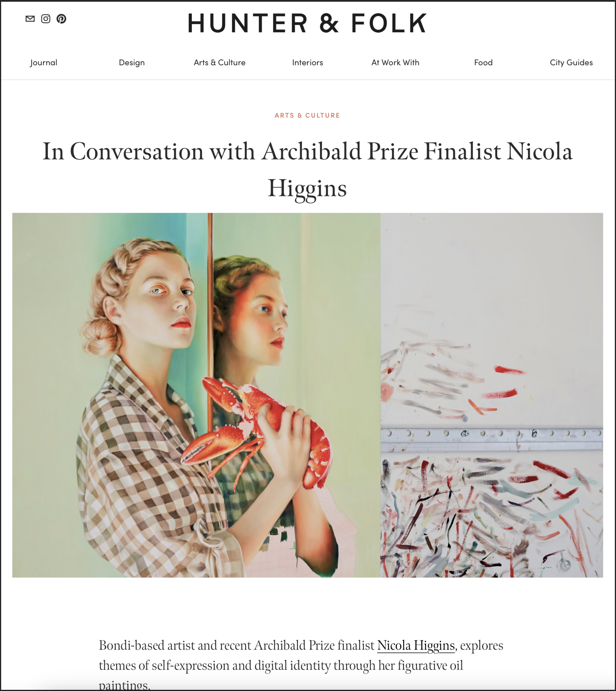 24th June 2024. Hunter and Folk. ‘In Conversation with Archibald prize Finalist Nicola Higgins’. https://www.hunterandfolk.com/journal/nicola-higgins. PDF