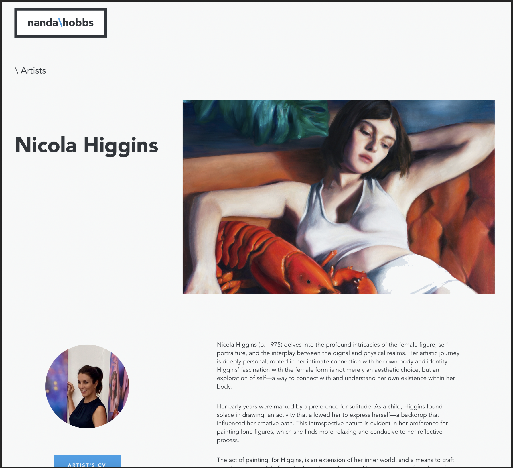March 2024, Nanda Hobbs / Artists / Nicola Higgins https://nandahobbs.com/artist/nicola-higgins. PDF